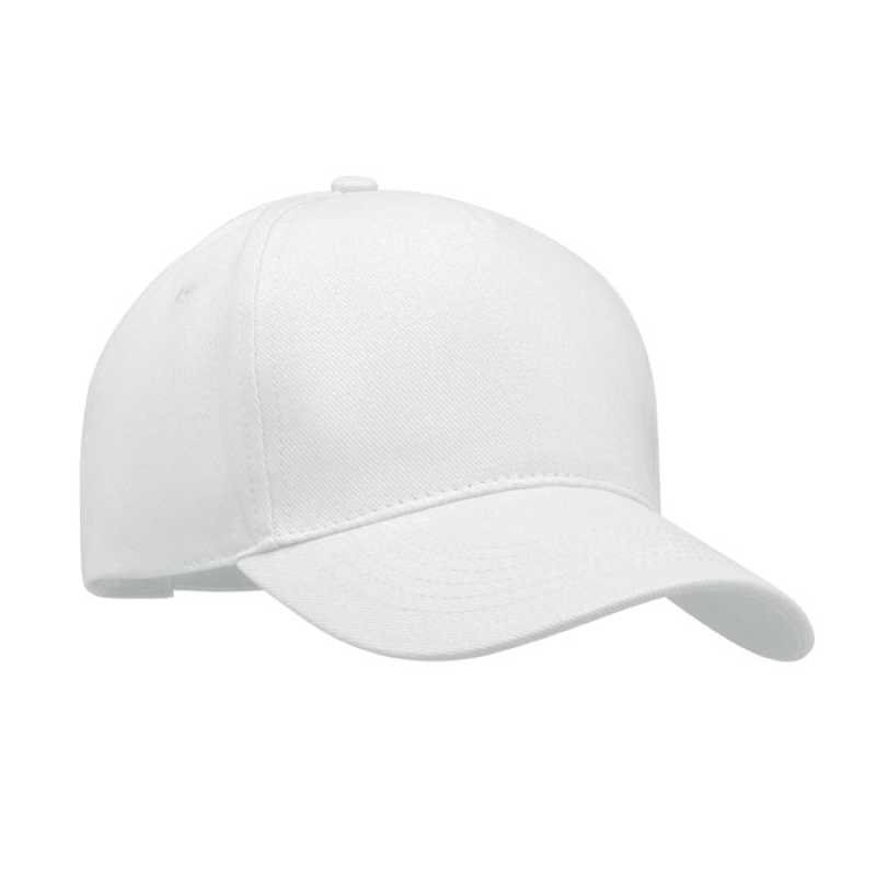 päťpanelový strih, vystužený predný panel, prešívaný, zľahka prehnutý šilt, obšité vetracie otvory, potiaca páska, veľkosť nastaviteľná mosadzným cvokom.Brúsený keper, 100 % bavlna.