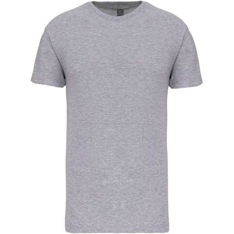 Jednofarebné prevedenia: 100 % bavlna.Farebné prevedenie v popolovej prskanej: 98 % bavlna/2 % viskóza a farebné prevedenie v oxfordskej sivej: 90 % bavlna/10 % viskóza.Všetky farebné prevedenia sú vyrobené z konverznej organickej bavlny.Strihané a šité.Rebrovaný okrúhly výstrih s elastanom.Podlepený výstrih v rovnakej farbe.Dvojité prešívanie na manžetách a leme.Certifikát STANDARD 100 podľa OEKO-TEX®N° CQ1007/7, IFTH.