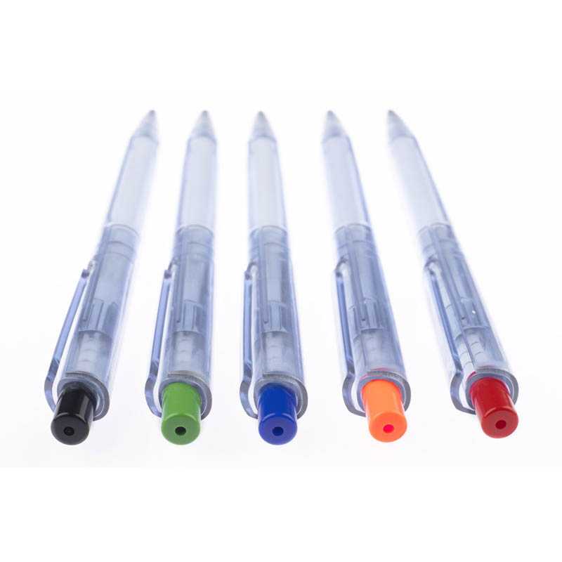 Pero RECYKLO vyrobené výhradně z rPET (recyklovaný PET) je odpovědí na hledání způsobů nakládání s plastovým odpadem. Průhledné modré tělo připomíná láhev s vodou, ze které bylo vyrobeno. Automatické kuličkové pero, modrá náplň typ G2.