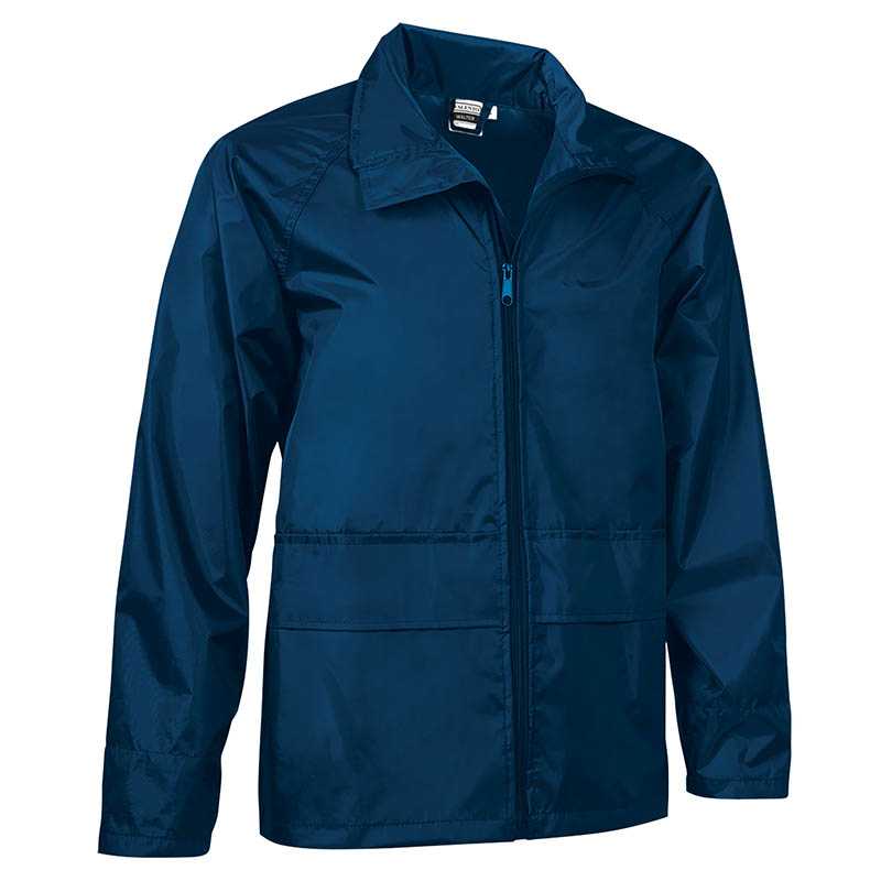 Windbreaker Jacket.Made of bi-stretch and breathable polyester fabric infused with elastane to enhance mobility, includes a mesh opening at the back and underarms for improved breathability and a better airflow. Stand-up collar with full-zip front closure and a chin guard for warmth and comfort. Straight-cut waist and sleeves with elasticated piping finish on cuffs for a better fitting and added comfort.Two slanted zippered waist pockets for a secure and convenient storage. Suitable marking methods: screen printing, transfer printing, vinyl application.Ideal for running and outdoor sports.