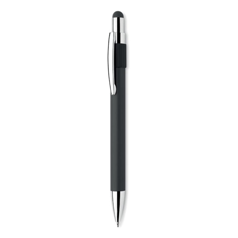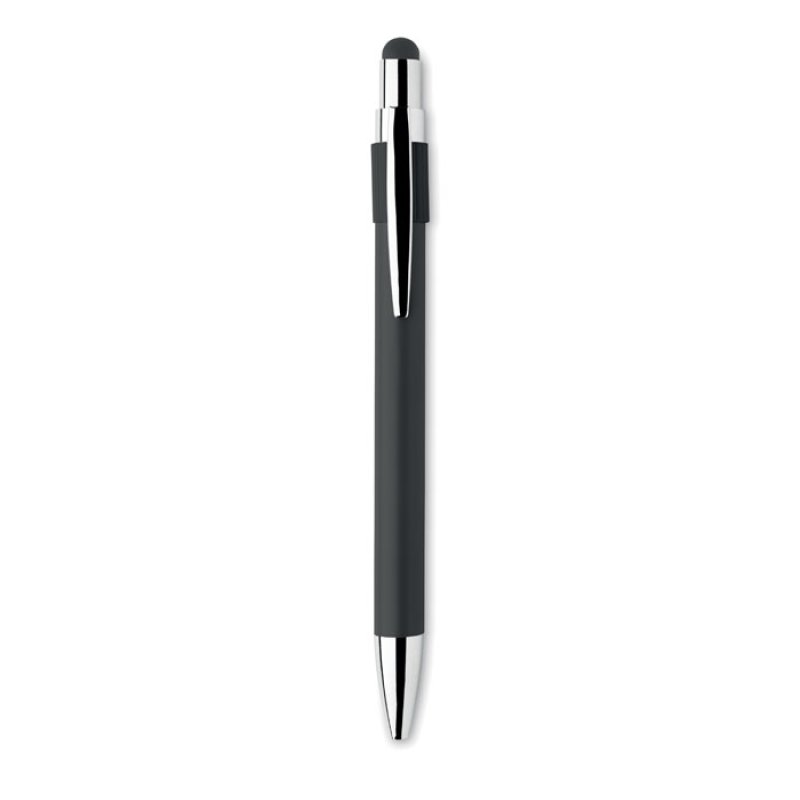 Hliníkové guľôčkové pero s dotykovým perom (stylusom), otočným antistresovým prvkom a modrou náplňou.