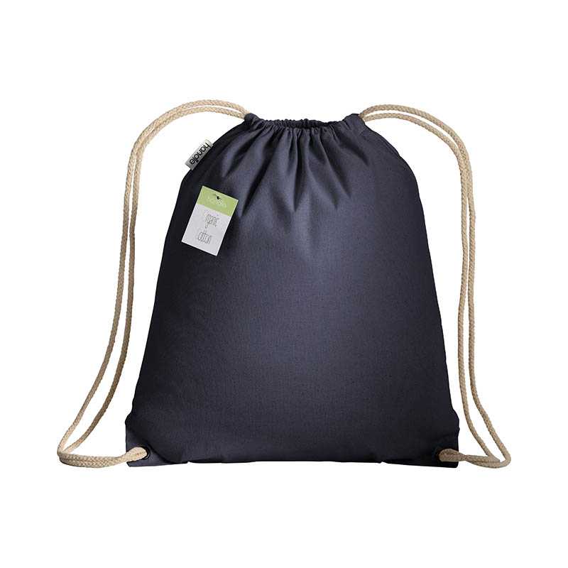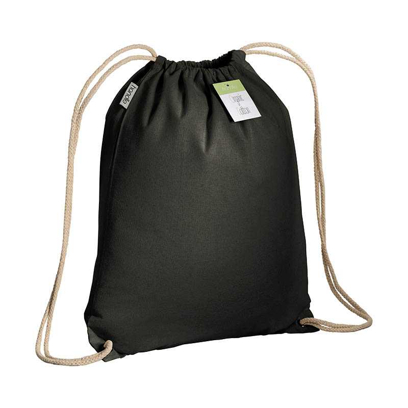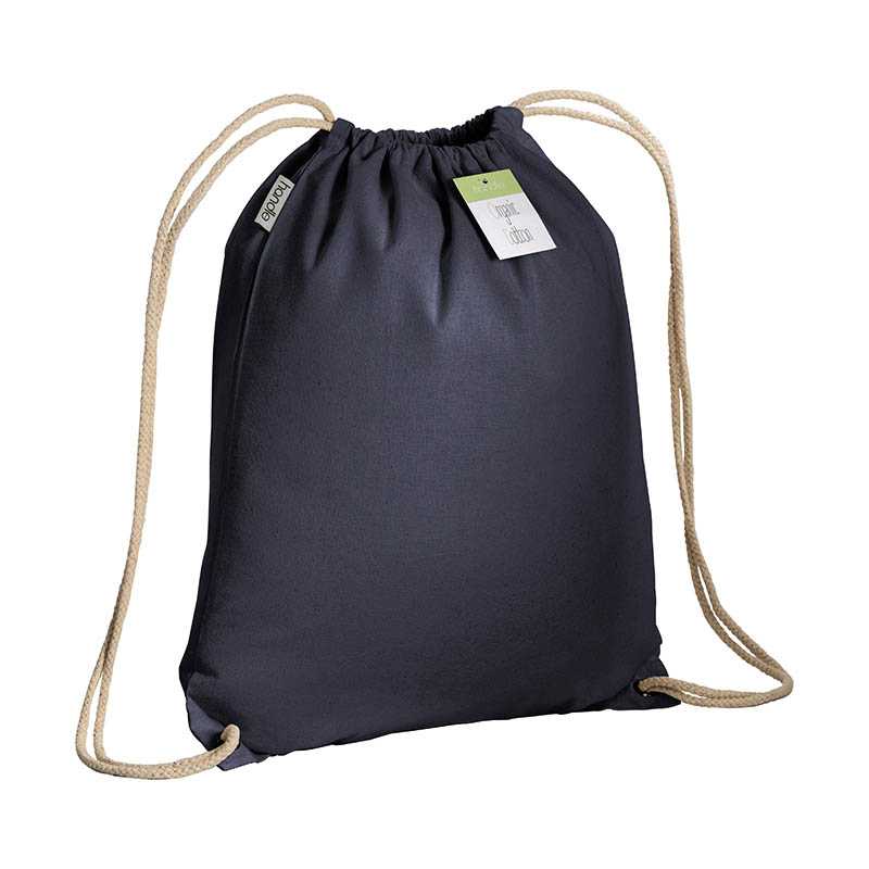 lehký stahovací pytel z před-recyklované bavlny; hlavní prostor se stahovací šňůrkou