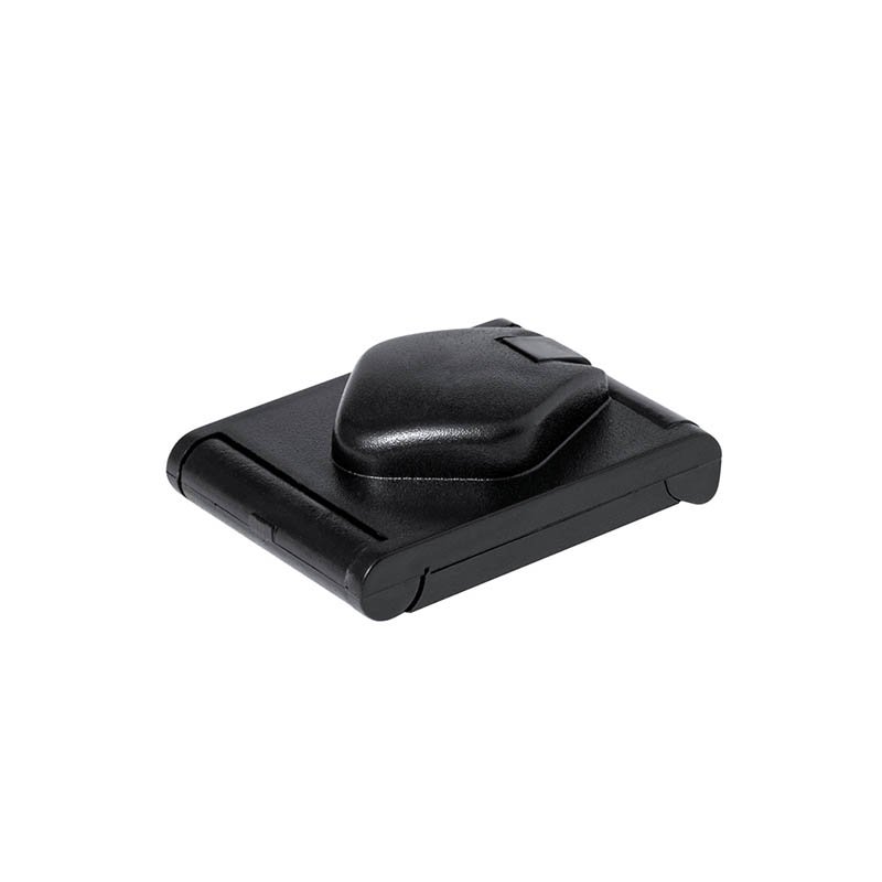 NOVINKA 2025. 8x magnification folding magnifier made of sturdy PP, with integrated LED light and measuring ruler. Powered by button cell battery (included) and presented in an individual black cardboard box.