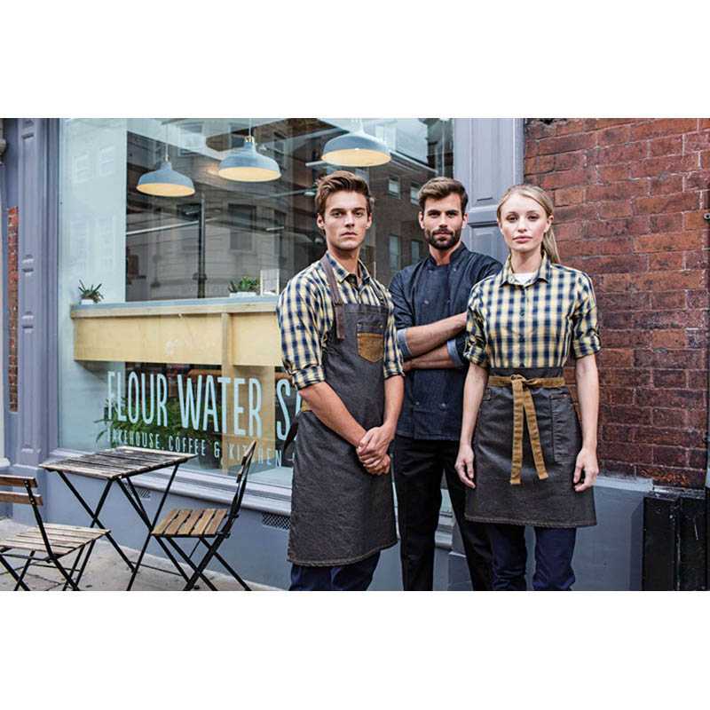 Štýlová klasická zástera z hrubého bavlneného plátna s jemnými detailmi z PU kože. Nastaviteľné zapínanie na pracku v hornej časti a veľké vrecko vpredu. Zástera s dlhou životnosťou, ktorá čím dlhšie ju nosíte, tým je krajšia.