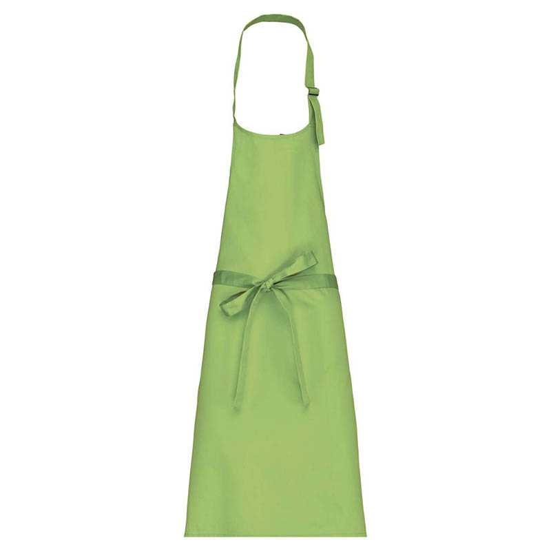 NOVINKA 2025. Nature line apron in RPET material, made from recycled plastic, to promote the reuse of plastic waste and help the sustainability of the planet. Fitted under the knee, with adjustable straps in resistant PU leather and a large front pocket. Label on pocket with RPET logo.