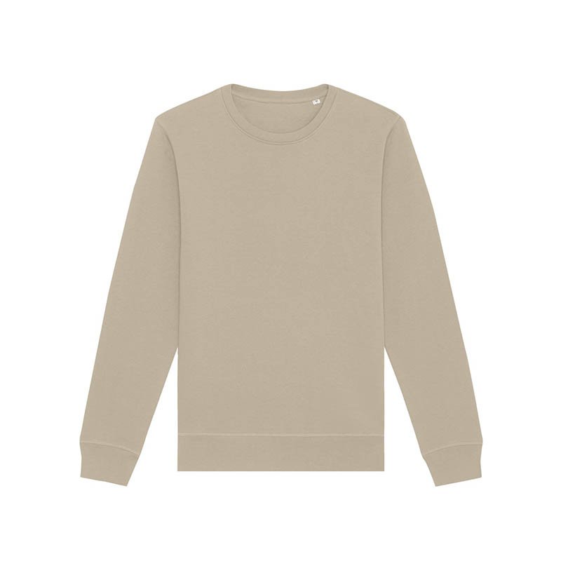 85 % organická bavlna/15 % recyklovaný polyester.Prstencovo spriadaná česaná bavlna.Rovný strih.3-vrstvový kartáčovaný flís, LSF (Low Shrinkage Fleece: predzrazený flís).1/2 kruhu vzadu.1 x 1 rebrovaný výstrih, spodný okraj a manžety.Dvojité prešívanie na manžetách, prieramkoch a spodnom okraji.Jednoduché vrchné prešívanie vo výstrihu.Podlepený výstrih vnútri na zadnej strane.