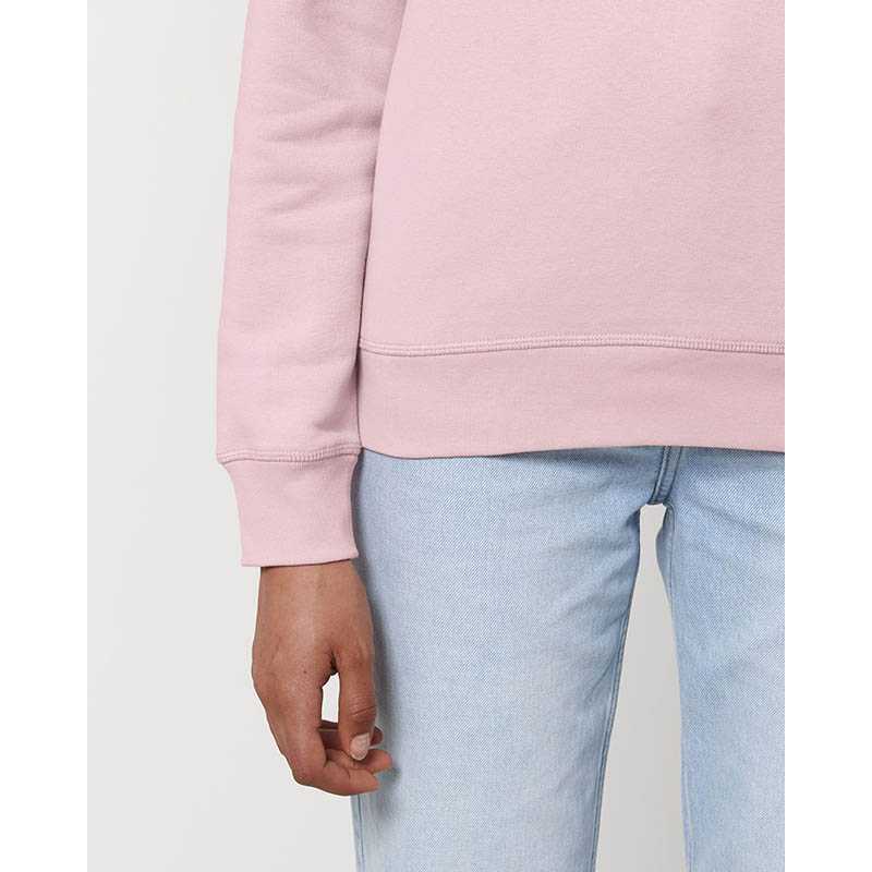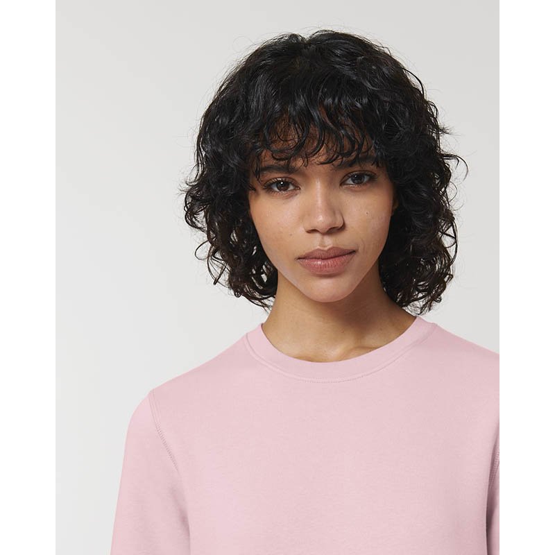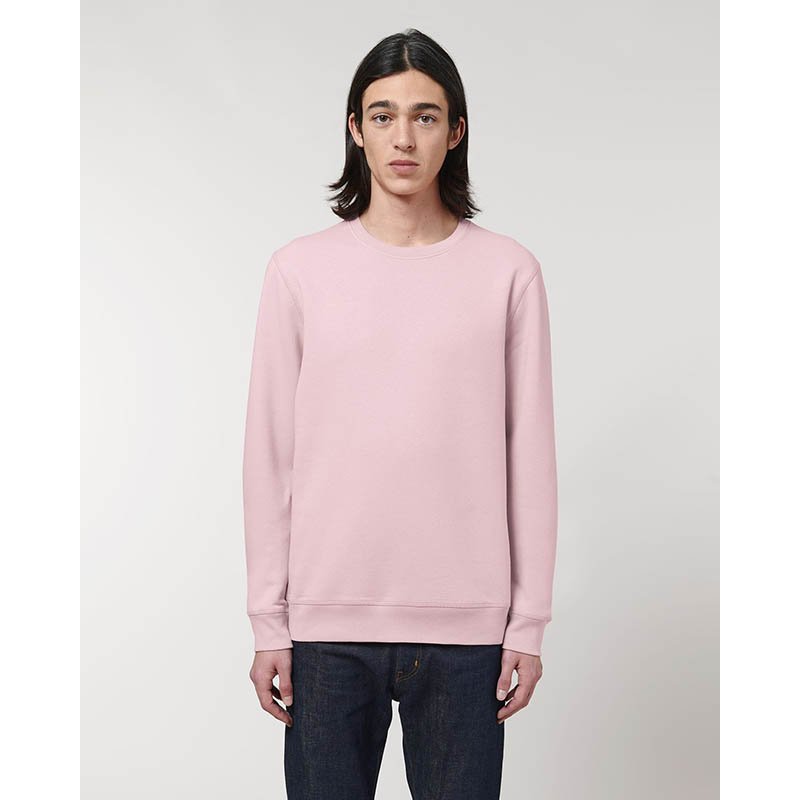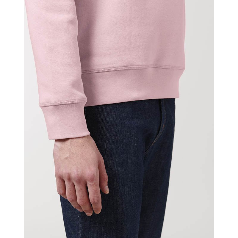 85 % organická bavlna/15 % recyklovaný polyester.Prstencovo spriadaná česaná bavlna.Rovný strih.3-vrstvový kartáčovaný flís, LSF (Low Shrinkage Fleece: predzrazený flís).1/2 kruhu vzadu.1 x 1 rebrovaný výstrih, spodný okraj a manžety.Dvojité prešívanie na manžetách, prieramkoch a spodnom okraji.Jednoduché vrchné prešívanie vo výstrihu.Podlepený výstrih vnútri na zadnej strane.