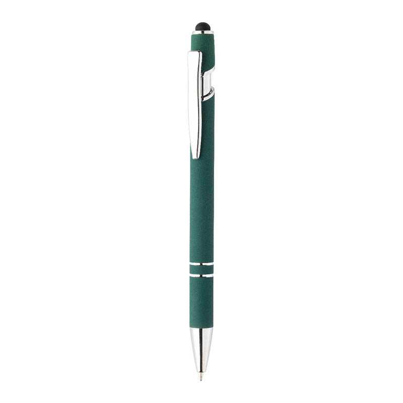 Guľôčkové pero so stylusom pre dotykové obrazovky a modrou náplňou. Telo je vyrobené z hliníku a objímka z kovu. Rotačný zapínací mechanizmus.