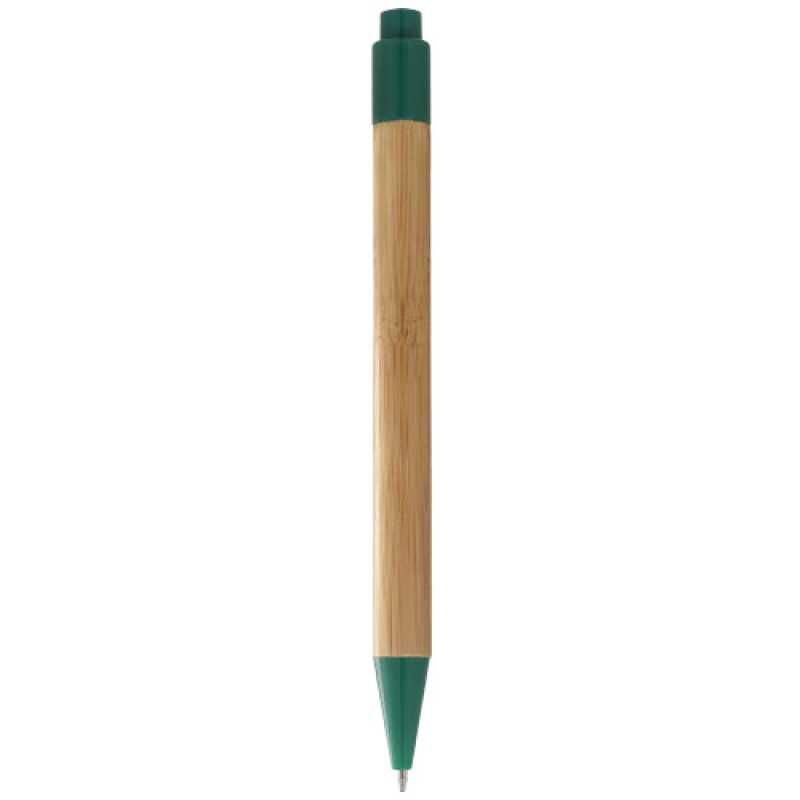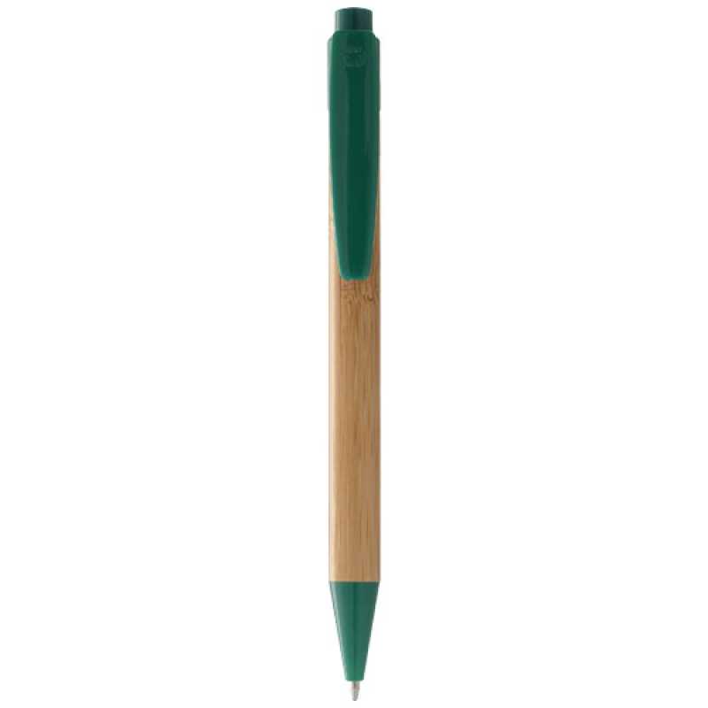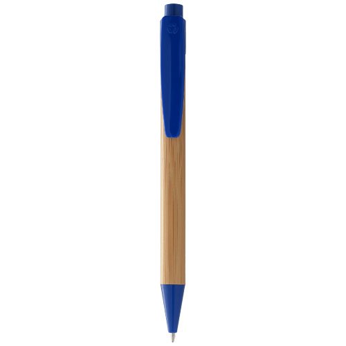 Ballpoint pen TUCSON BAMBOO: outside covered in bamboo, press mechanism, blue ink
