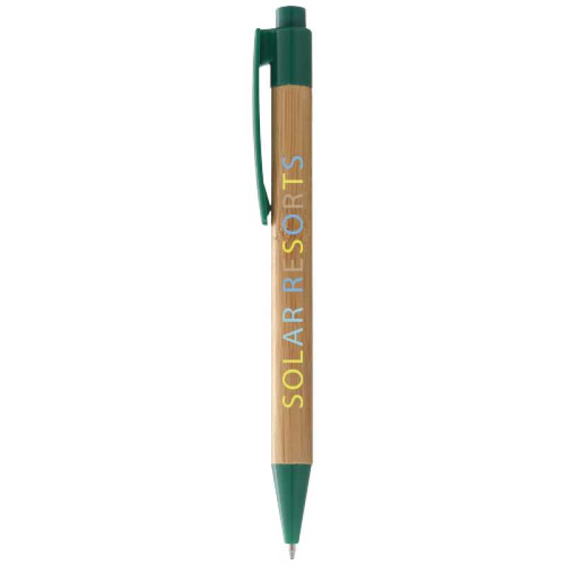 ECO bambusové guľôčkové pero s modrou tuhou. Upozorňujeme, že farba gravírovania jednotlivých kusov sa môže líšit pri gravírovaní prírodných materiálov.