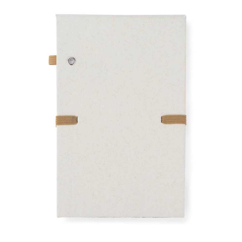 A5 zápisník s imitáciou koženého obalu, magnetickým uzáverom a 160 linajkovými stranami, vyrobenými z ekologicky šetrného papiera z cukrovej trstiny bez obsahu dreva.