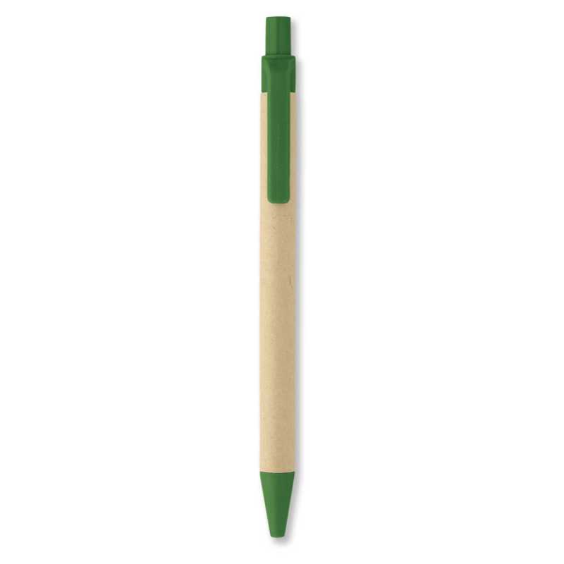 Biologicky odbouratelné kuličkové pero. Recyklovaný papír a PLA (kuřice). Modrý inkoust.