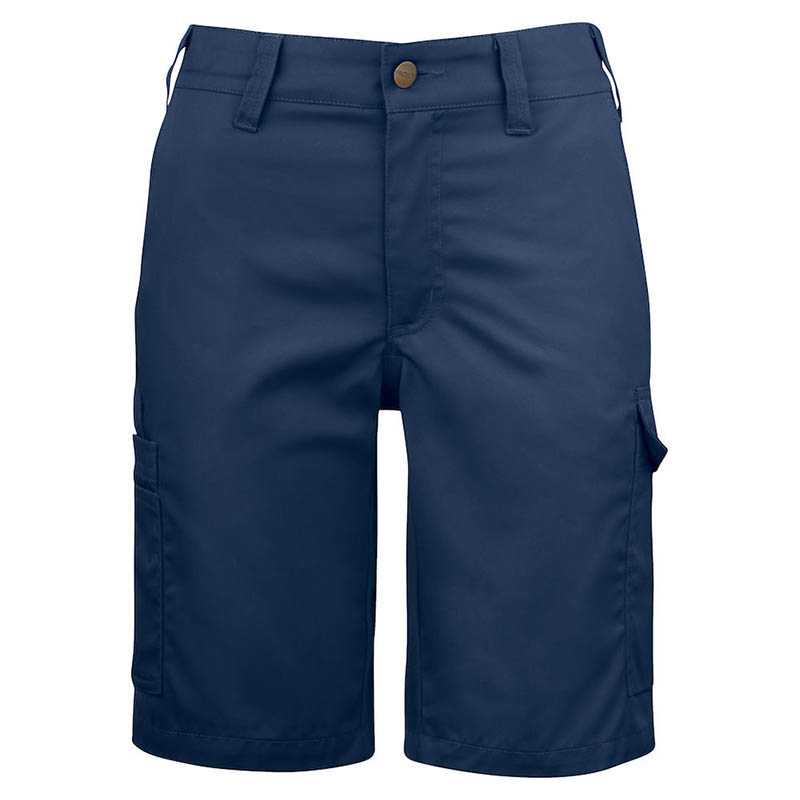 Shorts without front pleat. Side pockets in front, safety pocket with zipper on right side. Two exterior back pockets. Two leg pockets. Left leg pocket has flap and interior mobile telephone pocket. Right leg pocket has room for mobile telephone, pens, paper and folding rule. D-ring in front. Loops under back pockets and leg pockets for attaching Inbags. Material: 65% polyester, 35% cotton 245 g/m2 Colour: khaki-82, black-99, navy-58, stone-83 Size: C44–C62