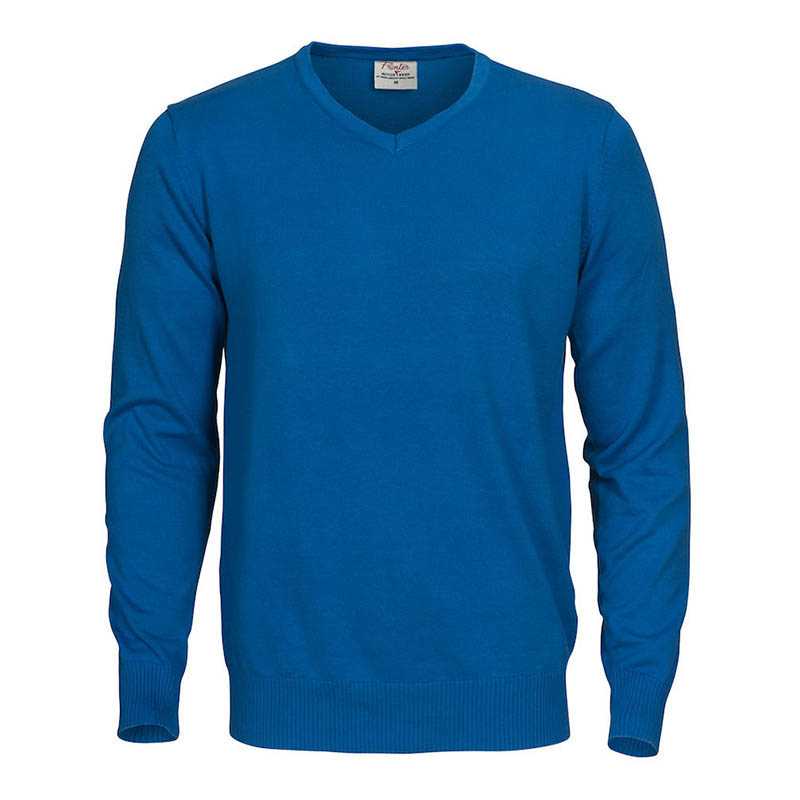 Knitted sweater. V-neck, fully fashion, 1x1 rib at bottom hem and bottom sleeve. · 60% cotton, 40% polyester 12gg  · 100 white, 400 red, 600 navy, 632 blue, 728 green, 900 black, 935 grey · S–5XL