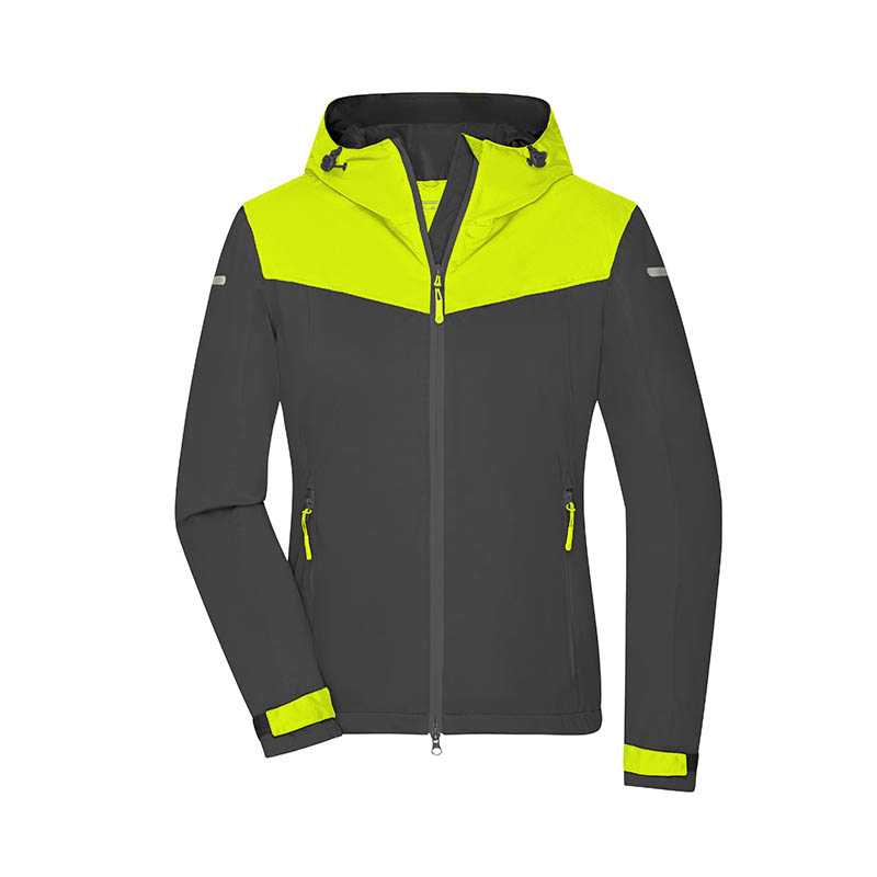 Wind and water repellent softshell jacket. Reversed waterproof zipper at center front and side pockets. Inner pocket with zipper on the left side. Detachable hood. Adjustable velcro closure at bottom sleeves. Hood and seam are adjustable with elastic cords. Hidden embroidery zipper on the inside. Fabrics: Shell: 96% polyester, 4% elastane, 285 g/m2, bonded with 100% polyester birds eye, WP 3000/MVP 3000. Lining: 100% polyester (sleeves) + 100% polyester mesh (body) Size: XS-2XL