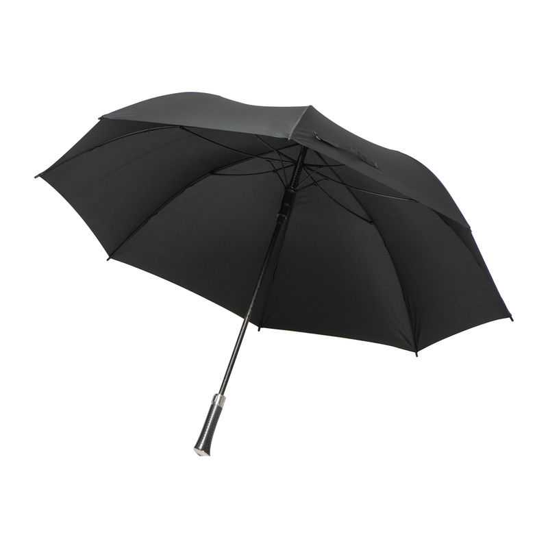 Convenient automatic function for quick opening, high-quality windproof system for maximum frame flexibility in stormy conditions, flexible fibreglass ribs, lightweight but strong aluminium shaft, water and dirt-repellent cover properties through original Teflon™ fabric protector, straight handle with black soft material and promotional labelling option