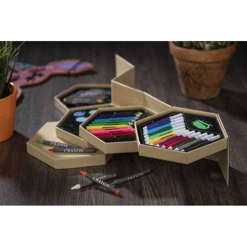 Sada umění se skládá z dřevěných tužek, fixů, barev a pastelek. Vše je zabaleno v ekologické krabici. Je to fantastická zábava pro nejmenší. Můžeme vytisknout vaše logo na krabici.