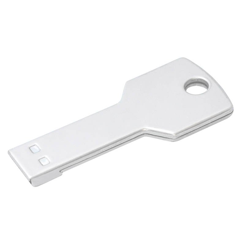 4 GB key-shaped metal pen drive with hole for keychain. Upload on request with delivery in 2 weeks for minimum orders of 250 pcs