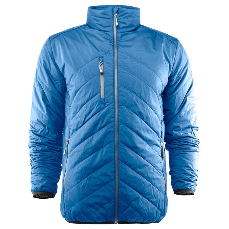 Quilted lightweight jacket. Fully lined with inverted hood in the collar (invisible zip at top of collar). Reversed coil zip at C.F, front pockets and chest pocket. Invisible zip on the inside for embroidery/ print. Elastic binding at bottom hem and bottom sleeves. Jacket can be tucked in the front pocket to transform to a travel bag. • Shellfabric 100% Polyester, 56 gsm. Padding Thermilite Micro 100% PES. Lining 100% Nylon • 600 NAVY • 620 METAL BLUE • 900 BLACK • S-3XL