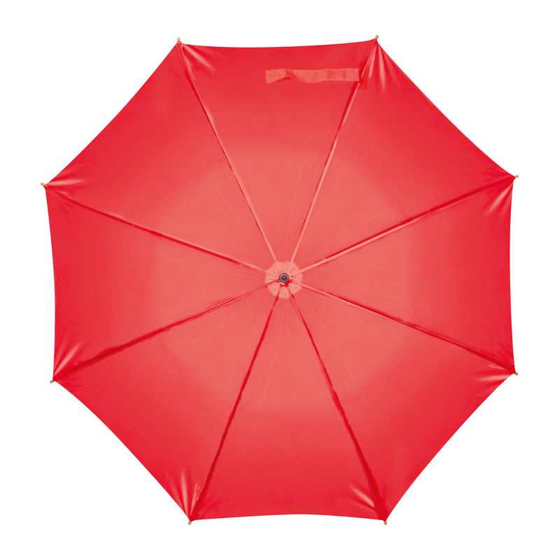 Automatický dáždnik s 8 panelmi, kovovým rámom, drevenou tyčou a rukoväťou. Recyklované PET.