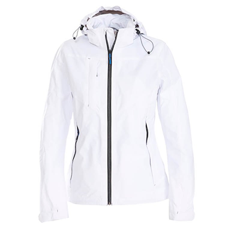 Sporty shelljacket with inside polyester lining. Practical decoration with at lot of pockets. Two coloured zippers at front. Decorative cutting seams and modern fit. Possible to add zipper pullers in other colourways matching the customer’s company logo. 100% PU nylon taslan milky coating, inside 100% polyester. 400 red, 600 navy, 632 ocean blue, 728 fresh green, 900 black, 935 steel grey, 100 white. XS–XXL