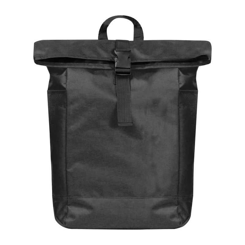 NOVINKA 2025. Backpack made of durable 600D RPET. Features a main pocket with buckle closure and an additional front pocket with zip closure. The shoulder straps are padded and adjustable. RPET badge on the outer label. Available in a variety of colours, with black accessories. Individually packaged in a Recycled bag.RPET material is made from recycled plastic to encourage the reuse of plastic waste and help the sustainability of the planet.