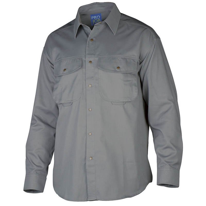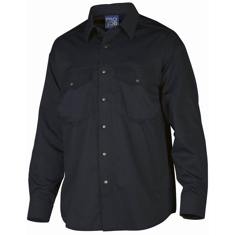 Shirt with press studs. Two large breast pockets with bellow pleat and room for Inbags. Adjustable cuffs with two press studs. Sleeve designed for optimal freedom of movement. Double yokes and two pleats in back. Material: 65% polyester, 35% cotton 190 g/m2 Size: XS-3XL