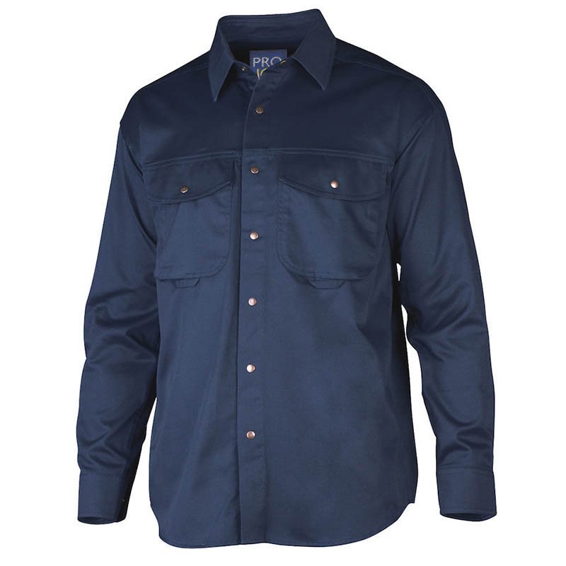 Shirt with press studs. Two large breast pockets with bellow pleat and room for Inbags. Adjustable cuffs with two press studs. Sleeve designed for optimal freedom of movement. Double yokes and two pleats in back. Material: 65% polyester, 35% cotton 190 g/m2 Size: XS-3XL