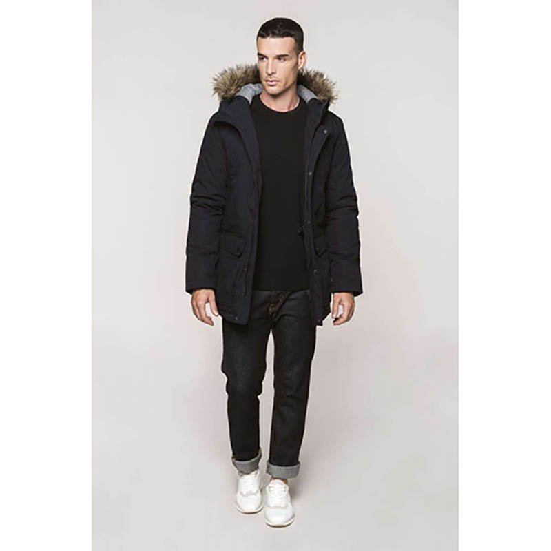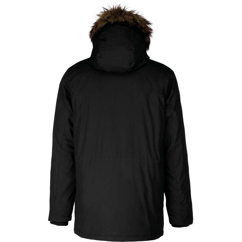 Hrubé plátno zo 65 % polyesteru a 35 % bavlny.Polstrovaná podšívka zo 100 % polyesteru.Zapínanie na zips skryté pod légou a cvokmi.Podšitá a polstrovaná kapucňa s odnímateľnou umelou kožušinou.4 vonkajšie vrecká vpredu: 2 veľké dvojité vrecká s cvokovými záklopkami a 2 náprsné vrecká s lemovaním a cvokom.1 vnútorné vrecko s zapínaním na suchý zips.Vnútorná sťahovacia šnúrka na úpravu veľkosti.Rebrované vnútorné manžety.Zips na hrudi a zipsový prístup na spodnom okraji na ozdobu.