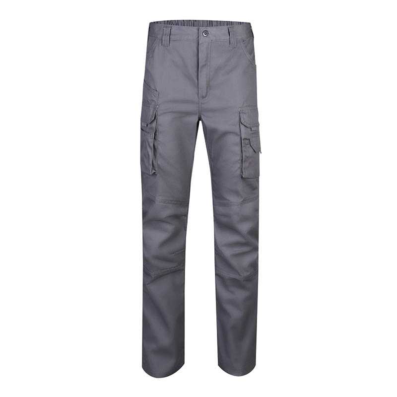 Front zip with button Back fabric reinforcement Knee fabric reinforcement Elastic waistband Double safety seam Right leg tool loop Darts on knees 10 pockets