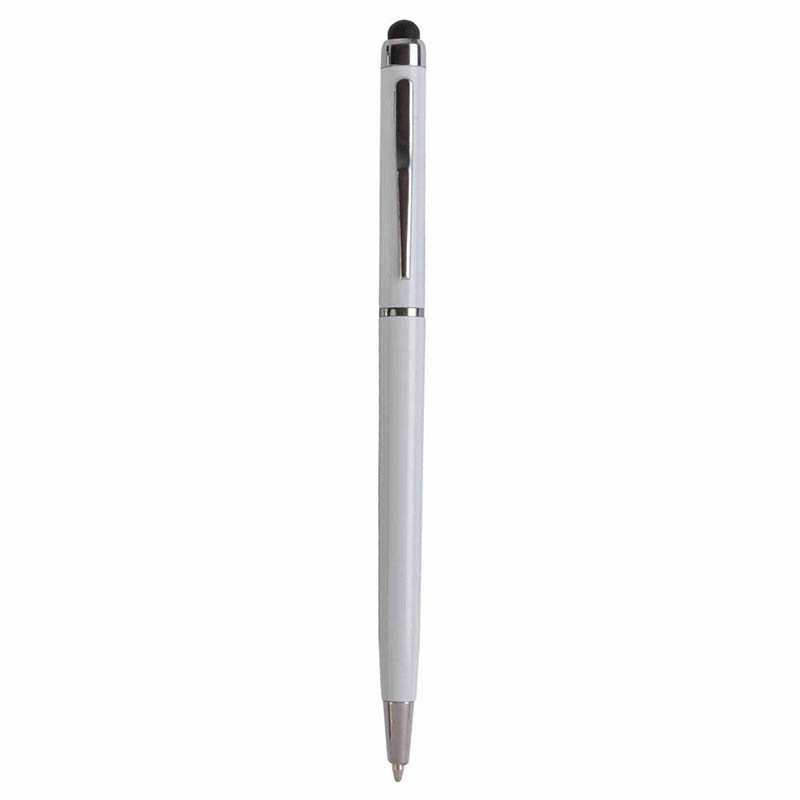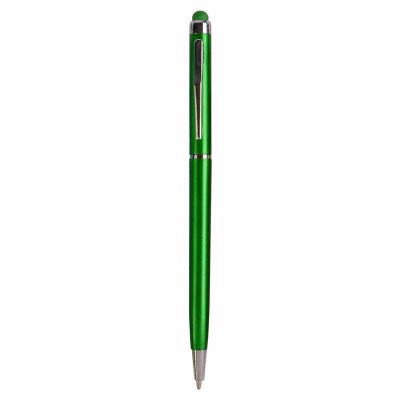 Plastic twist pen with touchscreen rubber tip and metal clip