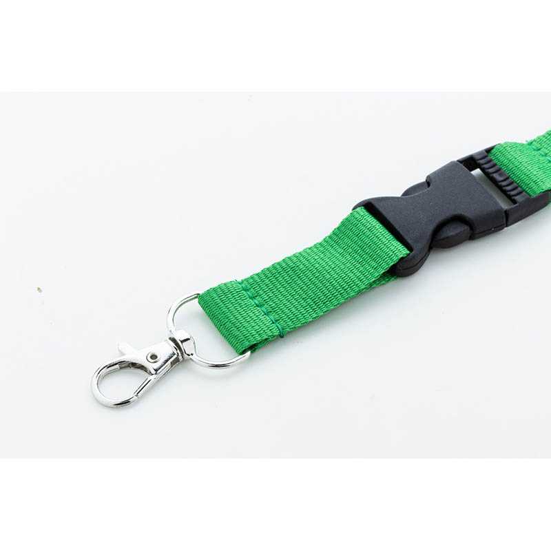 Lanyard made of strong woven polyester, with metal carabiner hook. The lower section is detachable using the quick release plastic clip.