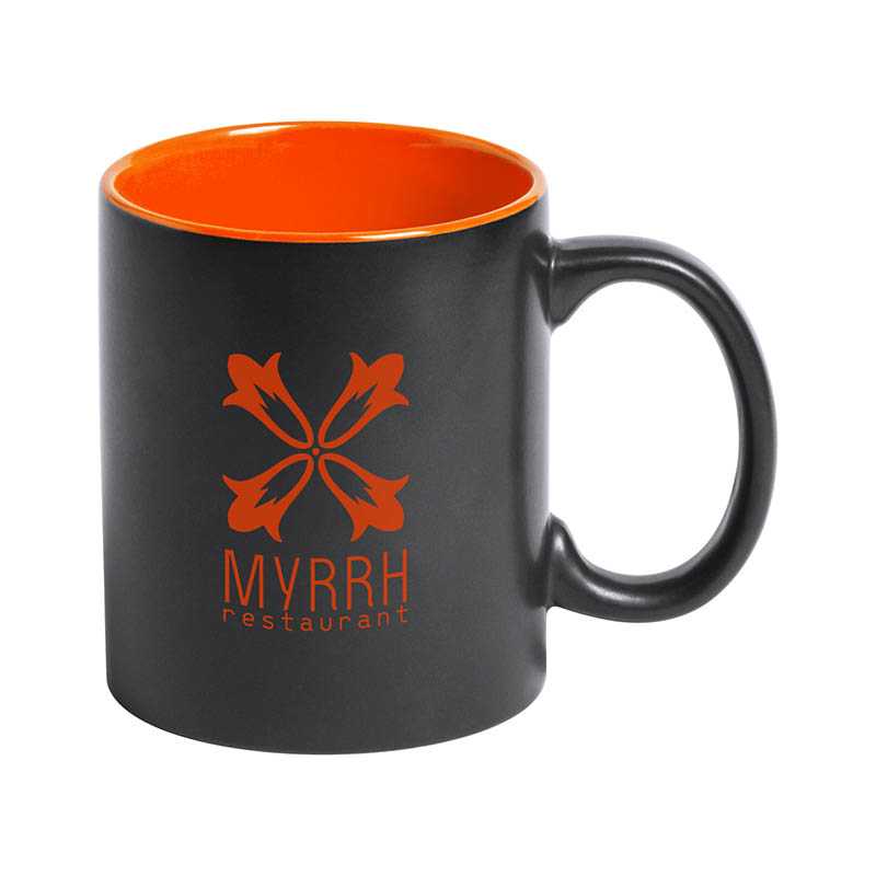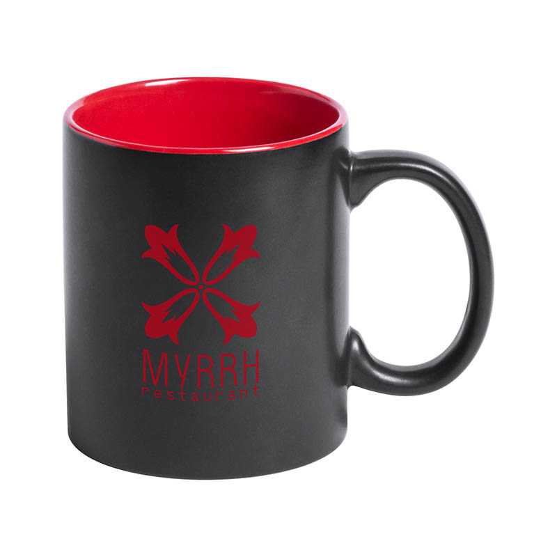 Čierny keramický hrnček s farebným vnútrom, 350 ml. Špeciálny povrch na laser. Vygravírované logo je v rovnakej farbe ako vnútro hrnčeka. V darčekovej krabičke.