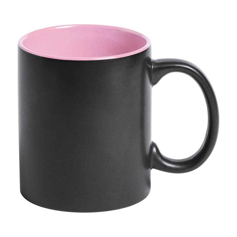 Čierny keramický hrnček s farebným vnútrom, 350 ml. Špeciálny povrch na laser. Vygravírované logo je v rovnakej farbe ako vnútro hrnčeka. V darčekovej krabičke.