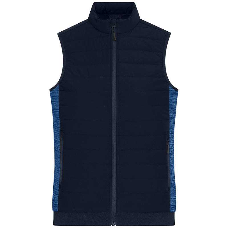 Polstrovaná vesta v zajímavé kombinaci materiálů Přední a zadní díl je prošitý, boky jsou strečový fleece Teplá a prodyšná, vytepleno soronou®AURA (obnovitelná surovina) Zip po celé délce, límec stojáček 2 boční kapsy na zip, 2 vnitřní kapsy Značkové zipy