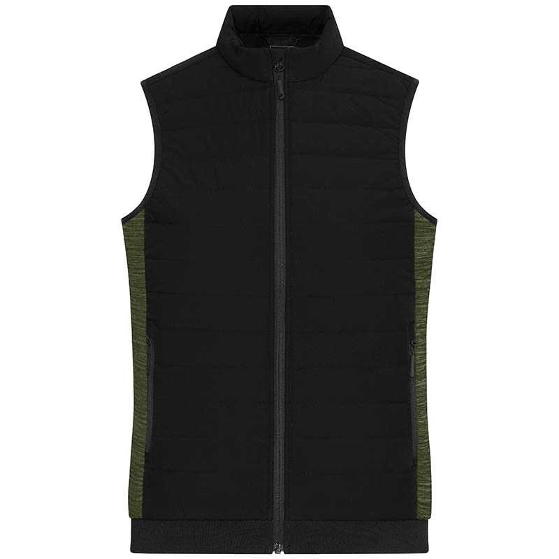 Dámska vesta (JN Ladies' Padded Hybrid Vest) > čierna / zelená (olive melange) > XS - REPRE - reklamné predmety