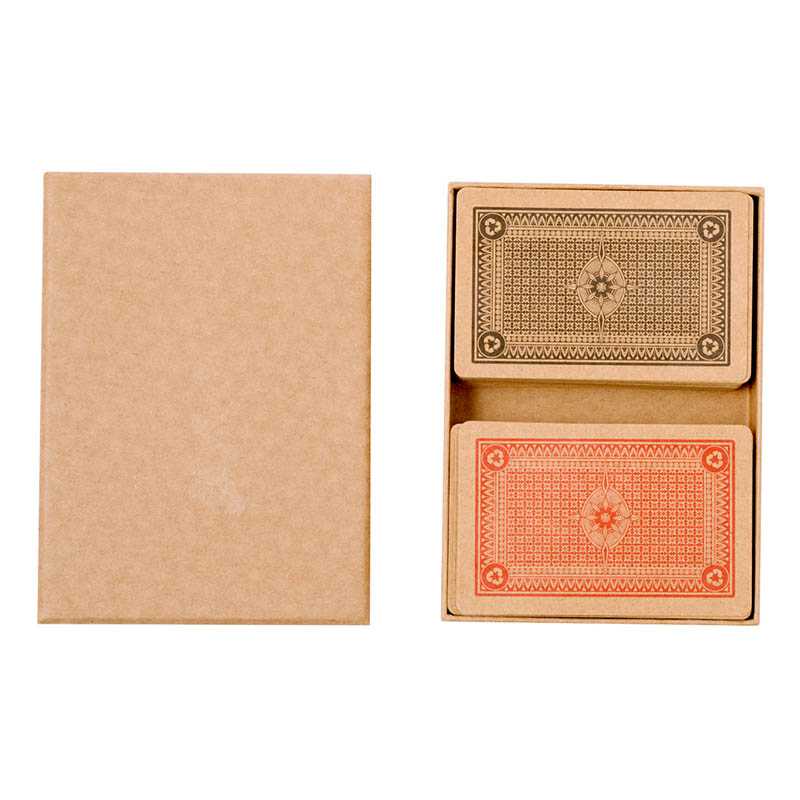 NOVINKA 2025. Set of Spanish and French playing cards, made of resistant Recycled cardboard. Spanish deck with 50 cards and French deck with 54 cards, presented in a kraft cardboard box with lid.