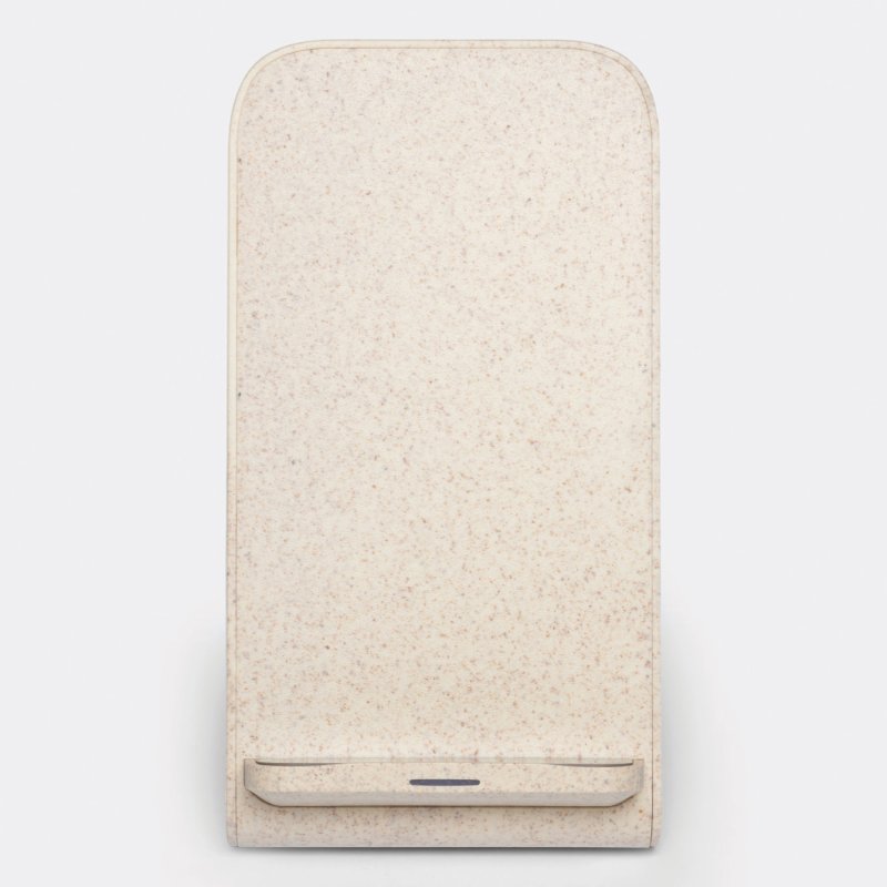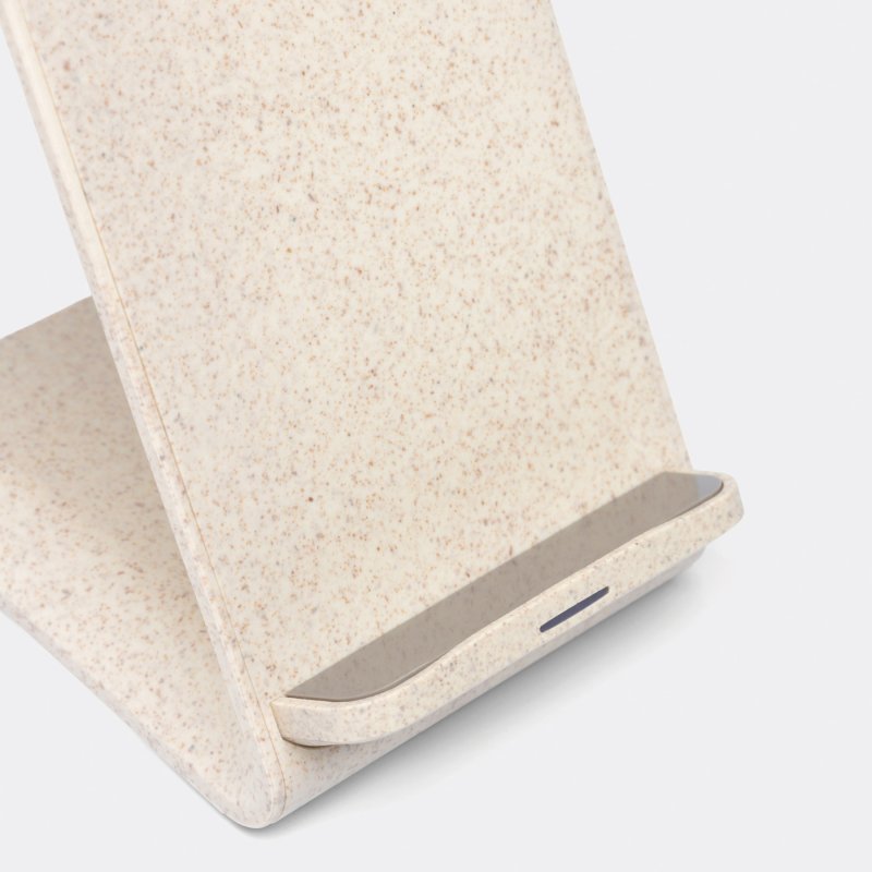 Wireless charging station INDUCTIVE: stand made of 35 % wheat straw and 65 % ABS, wireless charging of the device by touching it to the contact surface (the device has to be equipped for inductive charging), USB cable with USB Type-C plug (length approx.