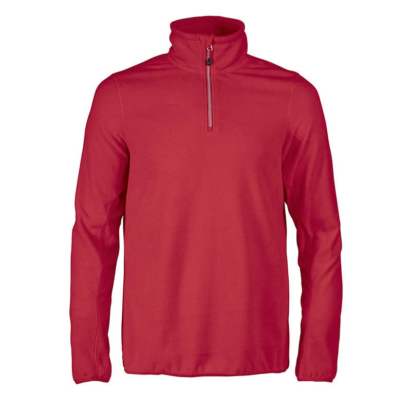 Microfleece halfzip sweater made in fabric to be active in. Front pockets, contrasting zippers, and decorative flatlock seam on sleeve. Elastic tape at hem and bottom sleeve. • 100% POLYESTER, 180 G/M2 • 305 BRIGHT ORANGE, 400 RED, 530 BLUE, 600 NAVY, 730 LIME, 900 BLACK, 950 METAL GREY • XS–3XL