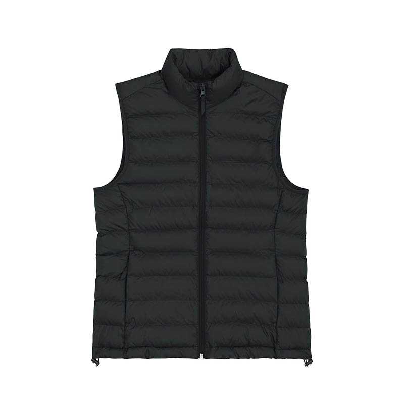 NOVINKA 2025. Sleeveless High collar Reverse nylon zip at center front Zipped welt pockets with extra grosgrain puller Elastic tape binding at armhole Fully quilted Side panels for better shape Inside seams with binding finish Bo