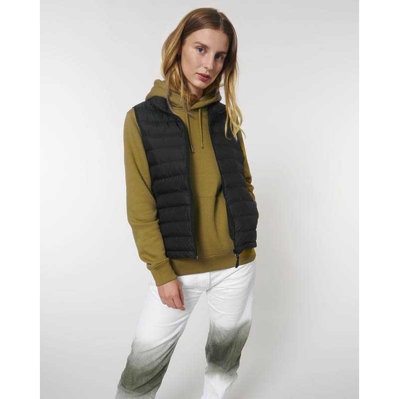 This padded vest for women offers great heat insulation despite its light weight. With handy "stow-away" function: The vest folds down into its own inside pocket, saving space on outdoor