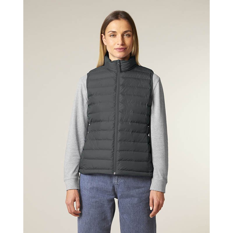 This padded vest for women offers great heat insulation despite its light weight. With handy "stow-away" function: The vest folds down into its own inside pocket, saving space on outdoor