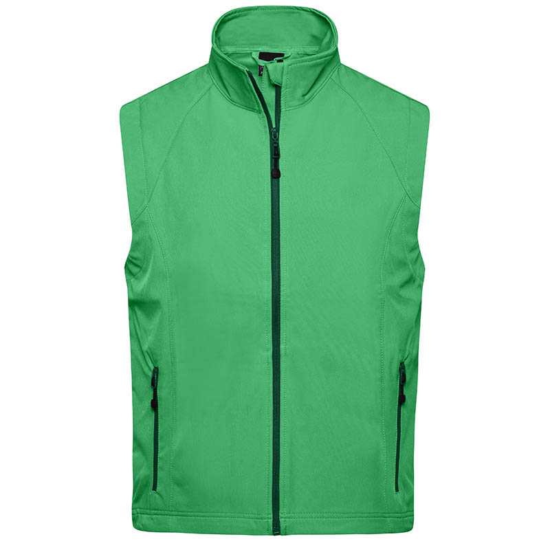 Stylová pánská softshellová vesta James & Nicholson..Vnější materiál: 90% polyester, 10% elastan.Větru a vodě odolná vrstva 3 funkční textilie s PU membránou (2.000 mm vodního sloupce) .Prodyšná (2.000 g / m2 / 24 h) .Měkká, sportovní pružná textilie .2 b