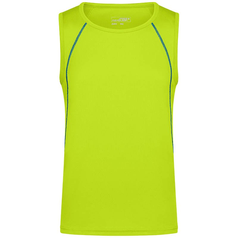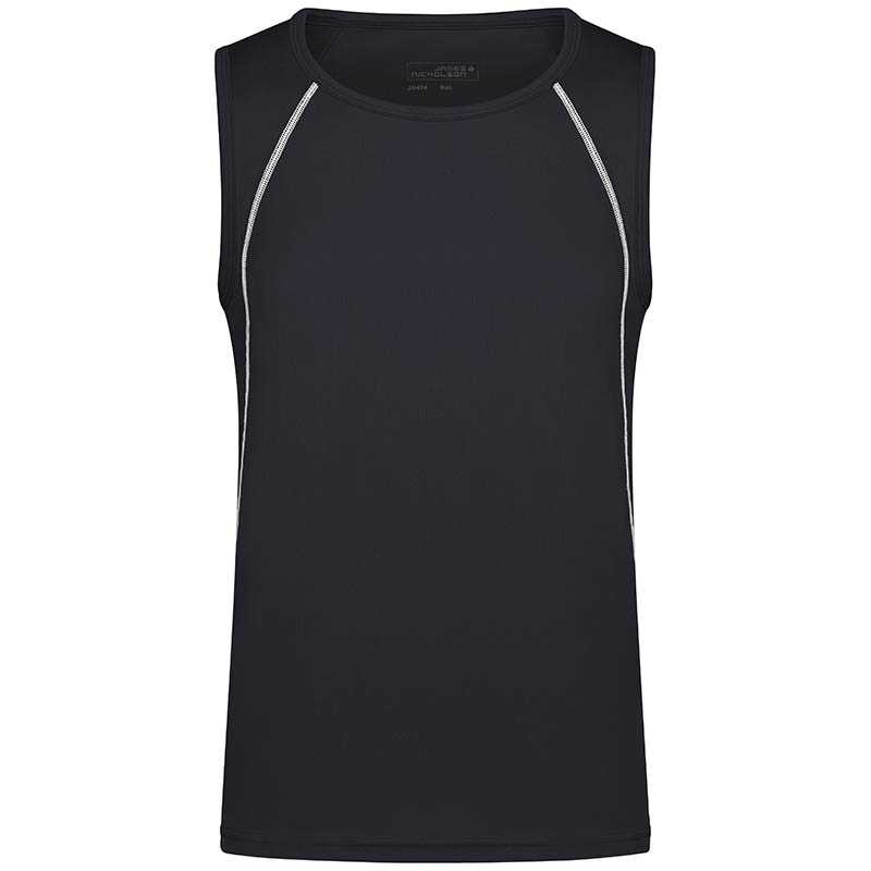 Pánské běžecké triko bez rukávů James & Nicholson..Vnější materiál: 100% polyester.Pohodlné na nošení, odvádí vlhkost, prodyšné a rychleschnoucí .Kontrastní síťované vložky, reflexní tisk na zadní straně .Hmotnost: 140 g / m2.Balení: 1/50 . (ks v jednom s