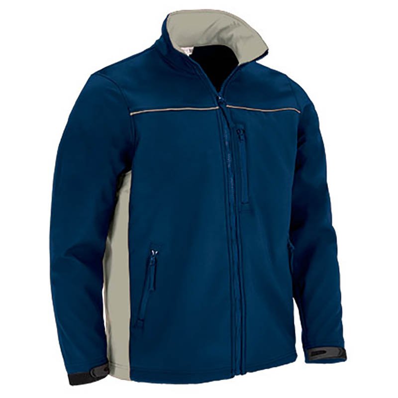 95 % polyester/5 % elastan.Softshellová trojvrstvová lepená tkanina.3 000 g/m2/24 h priedušnosť a 8 000 mm vodoodolnosť.Priedušná stredná vrstva a vnútorná termovrstva z mikroflísu.Vpredu na zips.2 bočné vrecká na zips.1 vrecko na ľavom rukáve na zips.