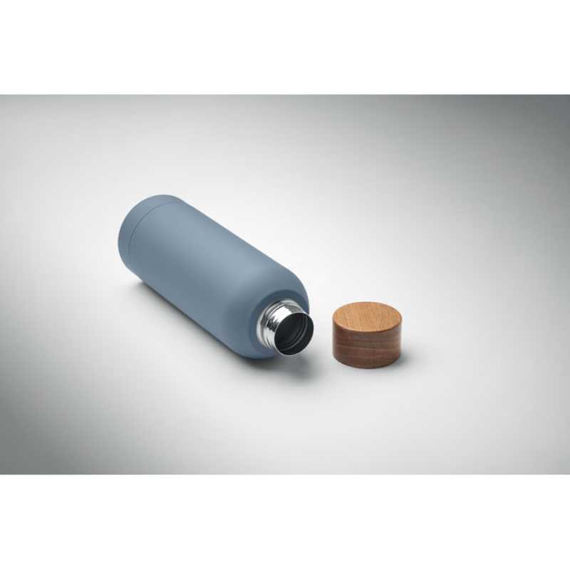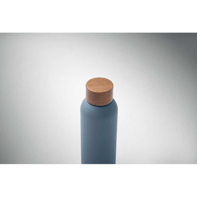 Jednostěnná láhev z recyklované nerezové oceli (90 % recyklované nerezové oceli a 10 % nerezové oceli) s pogumovým povrchem a víčkem z akáciového dřeva. Objem 700 ml. Protože se jedná o jednostěnnou láhev, může stále docházet k přenosu tepla od nápoje.