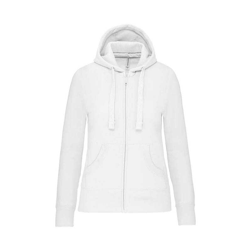 80 % česaná bavlna/20 % polyester (popolová prskaná: 79 % bavlna/20 % polyester/1 % viskóza).Kartáčovaný flís.Kontrastná páska pri krku (námornícka pre farebné prevedenia oxfordská sivá a popolová prskaná; oxfordská sivá pre všetky ostatné farebné prevedenia).Kapucňa s vafľovou podšívkou.Klokanie vrecká.Rebrované manžety a lem.Zapínanie na zips.Certifikát STANDARD 100 podľa OEKO-TEX®N° CQ1007/7, IFTH.