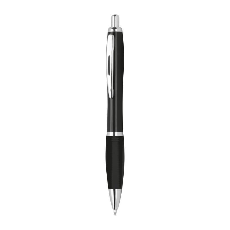 Guľôčkové pero R-ABS vyrobené z recyklovaného plastu, v rôznych farbách s doplnkami v chrómových farbách a čiernou protišmykovou časťou na uchopenie.