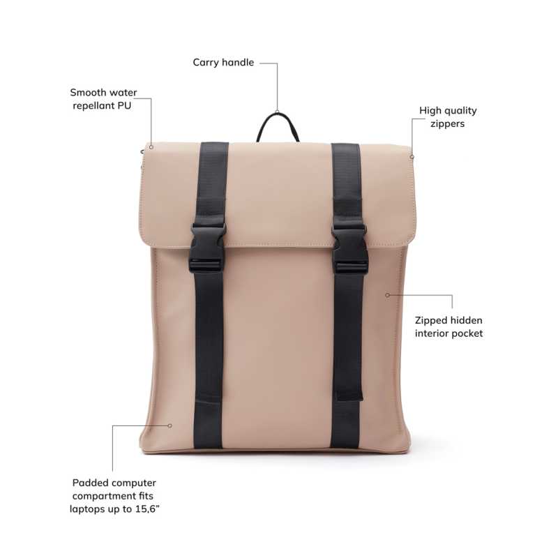 Minimalistický a čistý ruksak, ktorý je vhodný pre všetky príležitosti. Batoh je vyrobený z vodoodolnej nubukovej PU kože a má nastaviteľné popruhy pre optimálne pohodlie. Batoh je tiež vybavený vreckom na zips na jednej strane a skrytým vreckom na zadnej strane, takže sa môžete otočiť chrbtom bez toho, aby ste sa museli obávať o svoje cennosti. Je vhodný ako pracovná taška aj ako školský ruksak. Vhodné pre až 17" notebooky.