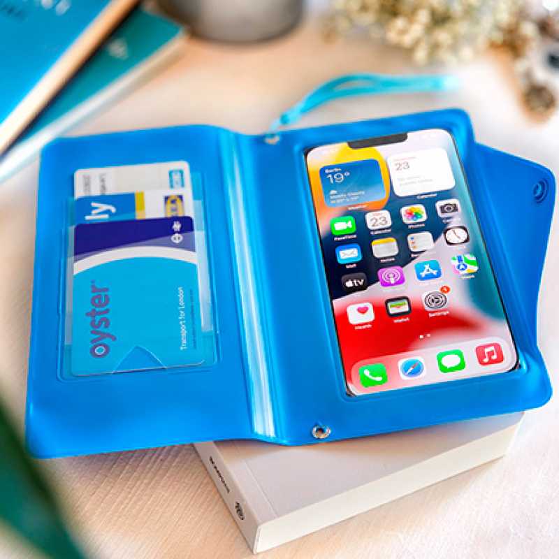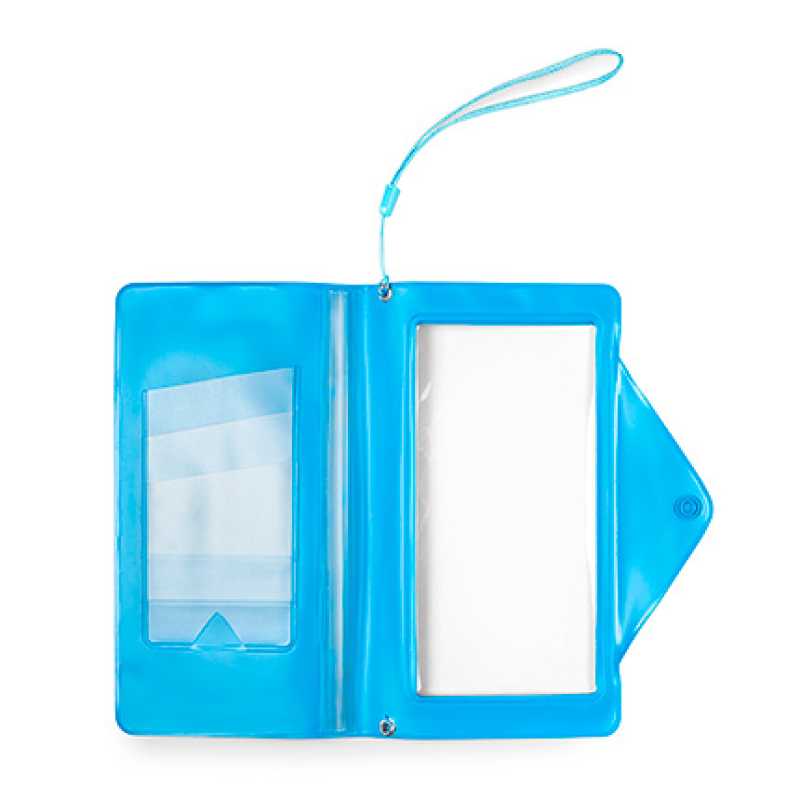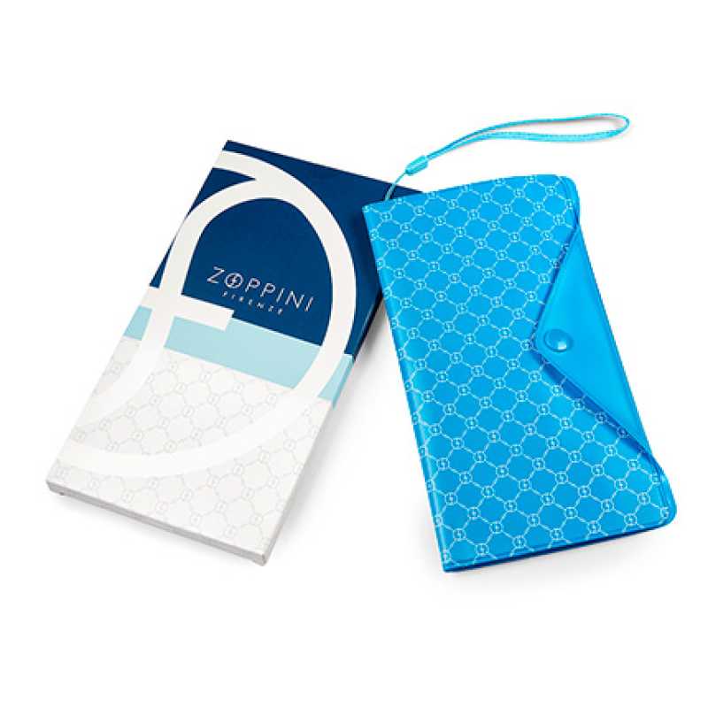 Clutch bag ZOPPINI. Light Blue. Summer clutch bag to use your smartphone safely on the beach and / or in the pool. The soft and resistant material ensures maximum protection from sand, creams, dust and water splashes. The case is made like a